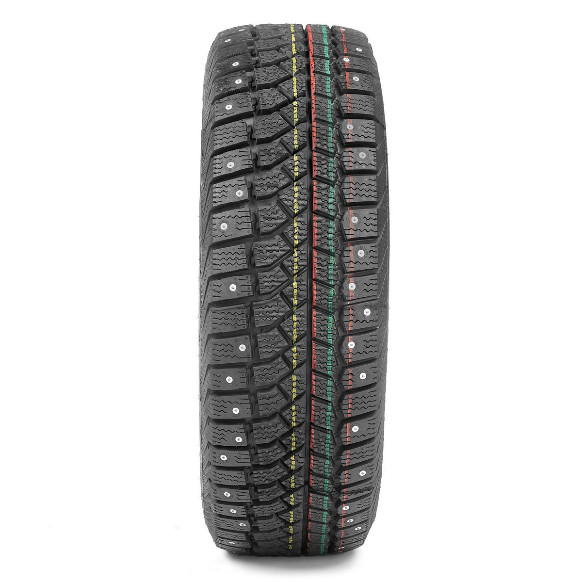 - Надёжное сцепление с дорогой при пониженном шумообразовании и долговечность шин достигается ассиметричным рисунком протектора и широким расположением шипов.